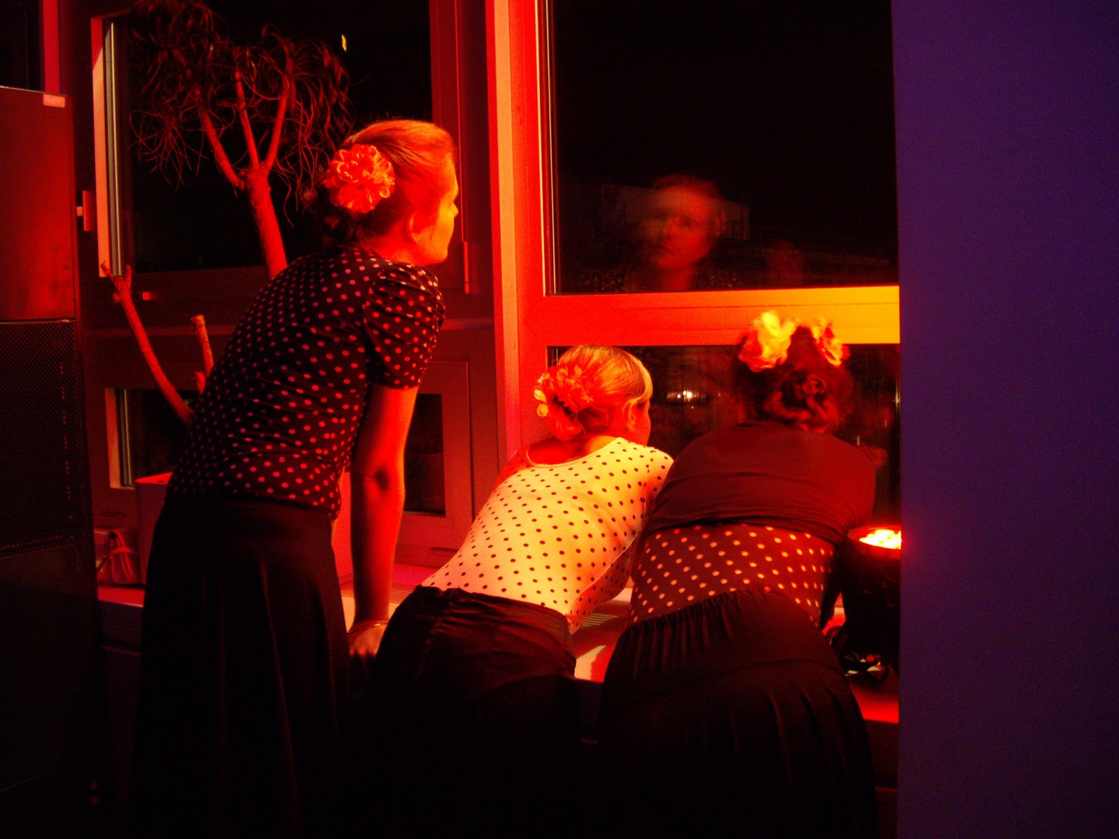 Antes de la presentacion, tomamos Sekt para que a las chicas y a Ming Cortes se les quitara la "Lampenfieber".